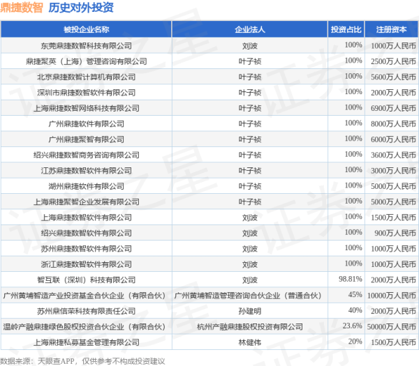 本站音问,凭证天眼查APP败露,鼎捷数智(300378.SZ)新增一都对外投资事件九游体育app(中国)官方网站,被投资公司为东莞鼎捷数智科技有限公司,法定代表东谈主刘波,投资占比为100%。该公司从事软件和信息时候管行状,注册本钱为1000万东谈主民币。当今,鼎捷数智共存在对外投资22项,投资占比前20的花式见下表: