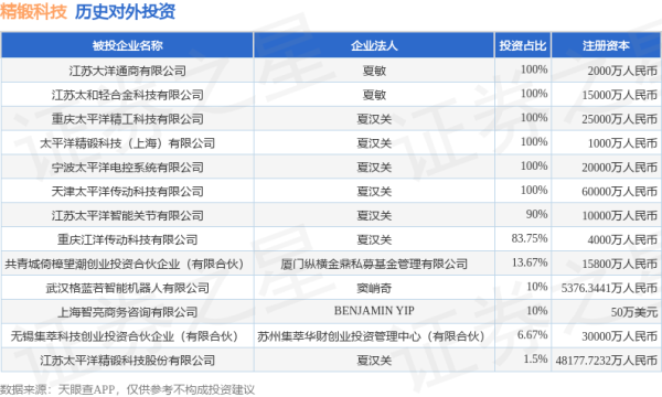 本站音问,凭证天眼查APP流露,精锻科技(300258.SZ)新增沿途对外投资事件,被投资公司为共青城倚樟望潮创业投资结伴企业(有限结伴),法定代表东说念主厦门纵横金鼎私募基金贬责有限公司,投资占比为13.67%。该公司从事商务办工作,注册成本为15800万东说念主民币。现在,精锻科技共存在对外投资13项,详见下表: