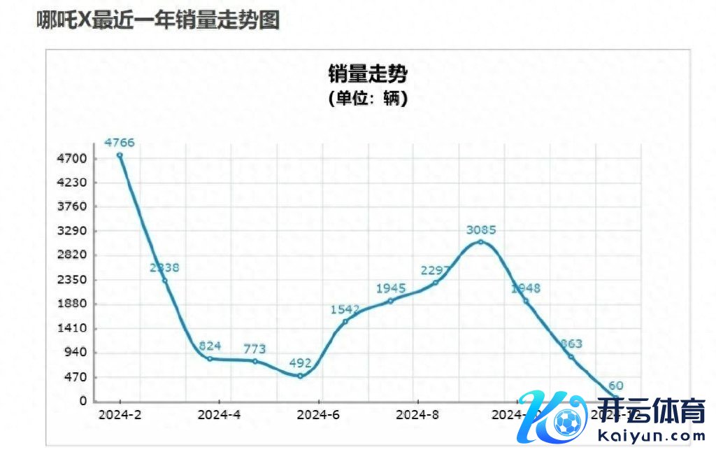 哪吒X是哪吒汽车旗下的一款纯电动紧凑型SUV,上市第一个完竣月(2023年11月)销售了7091辆,这一得益关于一款刚上市的新车型来说,算得上犀利常好的开局。有关词,这么的遥遥无期,自参预2024年,哪吒X的销量下滑幅度越来越大,以至有点断崖式着落的意味。数据骄横,从2024年1月份4766辆的月销量得益,到12月份,哪吒X的月销量照旧下滑到60辆,这么的得益,与它的高光时候比拟,险些是一丈差九尺。