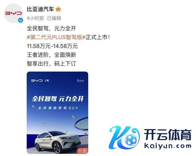 比亚迪第二代元 PLUS 智驾版本日崇拜上市,新车全系升级搭载智能座舱高阶版-DiLink 100、天使之眼-C 高阶智驾三目版,内置 5G 芯片,支持四音区语音识别、3D 控车、标配车载 ETC。