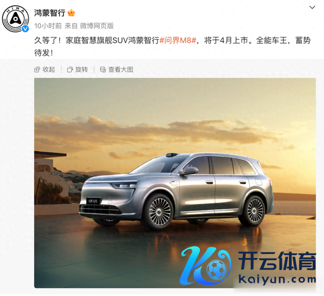 问界 M8 官宣 4 月上市九游体育官网登录入口