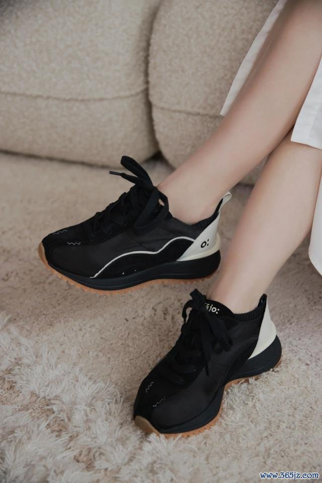 白色 W 型缝线,呼应鞋底的锯齿体式,也给纯玄色的鞋面增添了一抹点缀。侧面的弧形线条更黑白常显瘦,大致无缺勾画脚部线条。