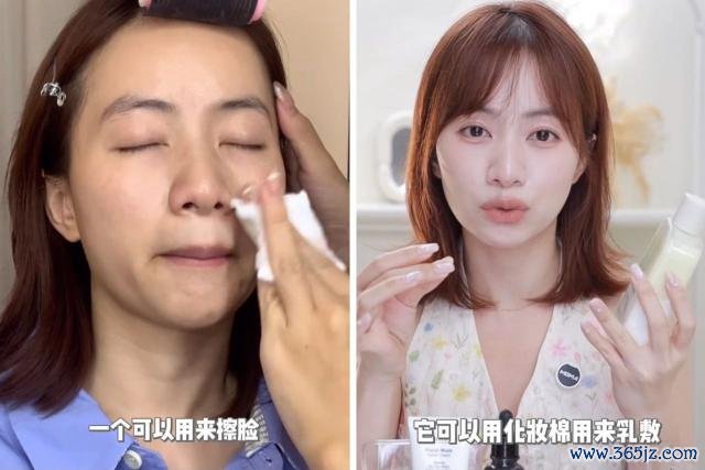 它有 2 种用法:要么是用来擦脸,要么是用化妆棉来乳敷。比如在我鼻翼处等闲起皮的位置就可以用它来乳敷,成的确的很是好,后续再上妆前霜 + 粉底液也不会搓泥,润度刚刚好~