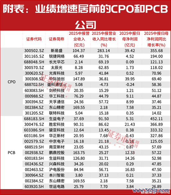 其中,在CPO和PCB两个重磅赛谈,现时通常有9家联系公司事迹增速翻倍,包括新易盛、生益电子、胜宏科技等(见附表)。