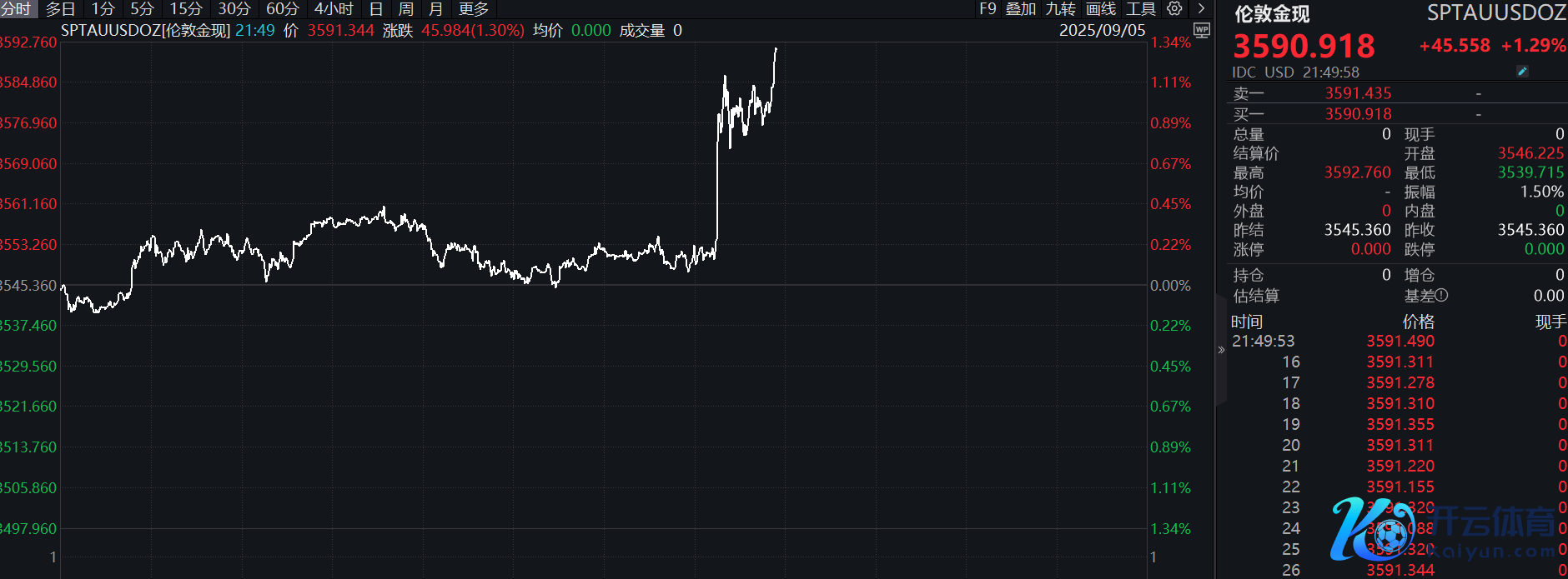 现货黄金打破3590好意思元/盎司,日内涨1.29%,续创历史新高。