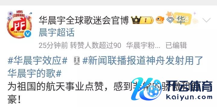 华晨宇全球歌迷会官博,在酬酢平台发文,公开了这么一个对于华晨宇的好音问! 于是,从华晨宇的歌曲到歌手华晨宇本东谈主,也就引东谈主豪情!“跳吧在无比高大的星系,喝吧要千里迷洪荒的飘逸……”神舟飞船腾飞后,前来围不雅的不雅众们,欣喜声一阵接着一阵。歌曲的飒爽英姿和神舟飞船腾飞的豪举方法,一皆映衬感东谈主至深的稳定氛围!