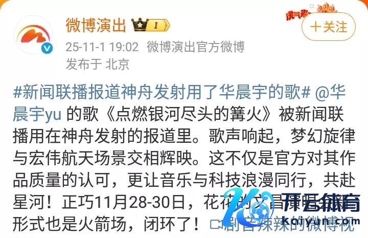 新闻联播报谈神舟辐射用了华晨宇的歌!这对于一位优秀的内地歌手来说,是何等好意思好的成果!了了可见的是九游体育app娱乐,歌手华晨宇演唱的这首歌曲《焚烧星河至极的篝火》,不仅美妙入耳,还充满正能量,和故国航天行状的发展相呼应!
