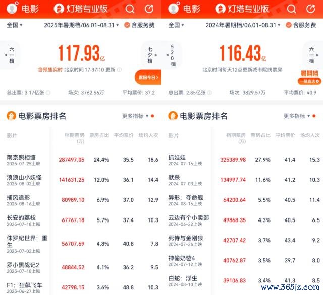 凭借七夕节两部爱情新片的带动,2025 年暑期档总票房终于超越了 2024 年。诚然与 2023 年创下的影史记载(206.2 亿东谈主民币)相去甚远,但最终近 120 亿元成绩的饱读励意旨和提振成果很是之大。