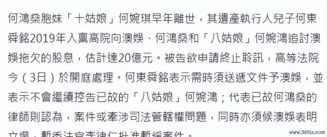 外甥的讼师则暗示,何鸿燊是香港东说念主,讼事就应该归香港统领,反对长久暂停。