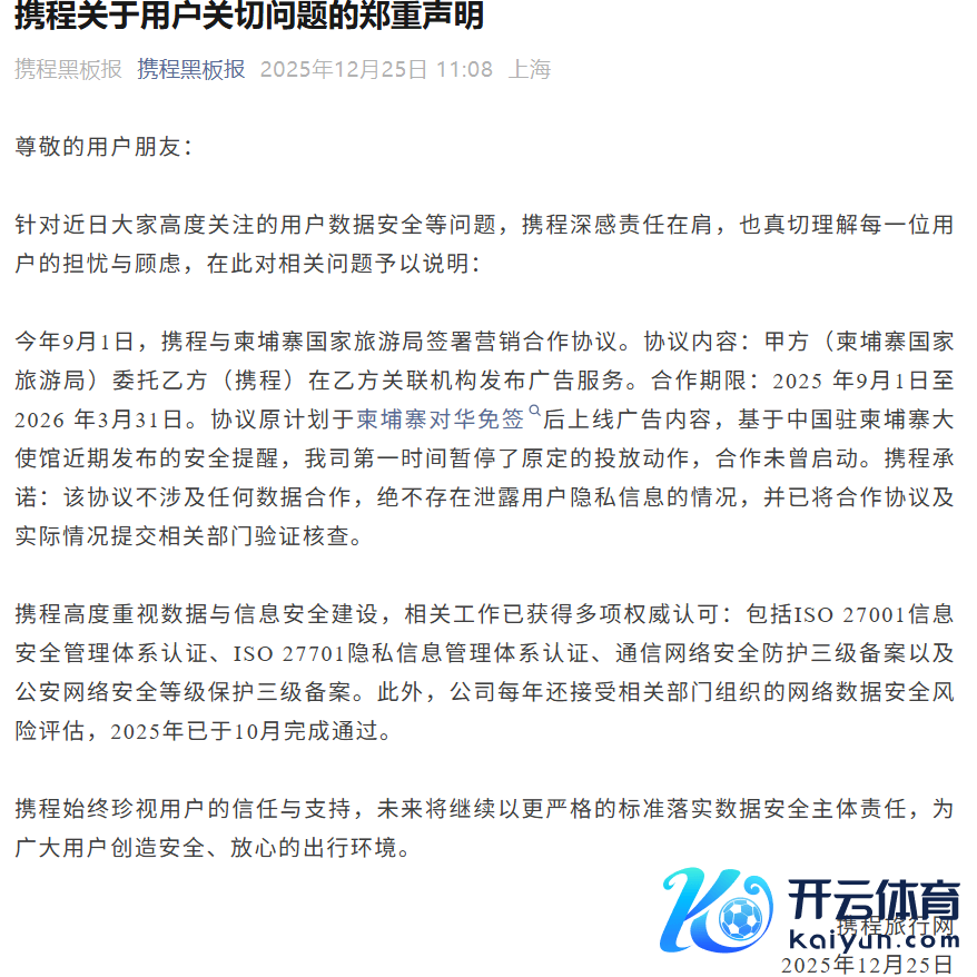携程声明:与柬埔寨国度旅游局勾通未尝运行,不触及任何数据勾通携程声明:与柬埔寨国度旅游局勾通未尝运行,不触及任何数据勾通