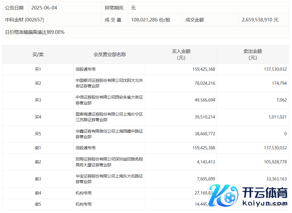 中科金财本日涨停 深股通专用席位买入1.59亿元并卖出1.38亿元